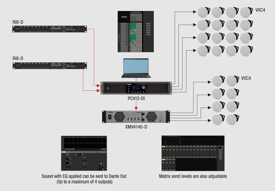 『PCシリーズD/DIモデル』の豊富なインプットマトリクス機能とDanteを組み合わせることで、過去にない柔軟で費用対効果にも優れたシステムを構築することが可能です。さらに、アンプ設定ソフトである『ProVisionaire Amp Editor』は同時発表の『ProVisionaire Control/Touch V3.5』と同様のUIを採用したことにより、システムの設計からコントロール、モニタリングまで一貫した操作感を提供することにより、設計時間の短縮にも貢献いたします。