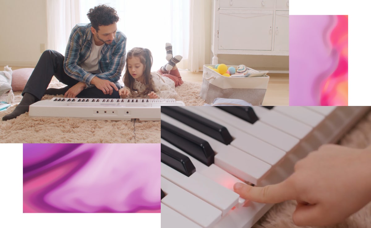 大好きな曲を楽器に追加して、光る鍵盤で楽しく練習・演奏できます。
