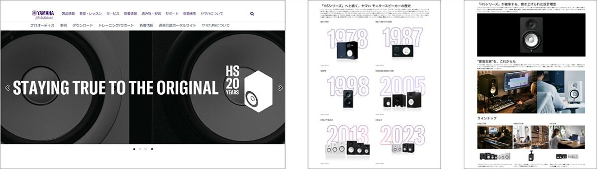 モニタースピーカーのベストセラーモデル「NS-10M」からHSシリーズの最新モデル「HS4」「HS3」へと繋がる、ヤマハ モニタースピーカーの代表モデルを紹介。他にもHSシリーズの音質・設計コンセプトをはじめ、サウンドエンジニアやアーティストなどによるレビューへのリンクなど、充実したコンテンツがご覧いただけます。