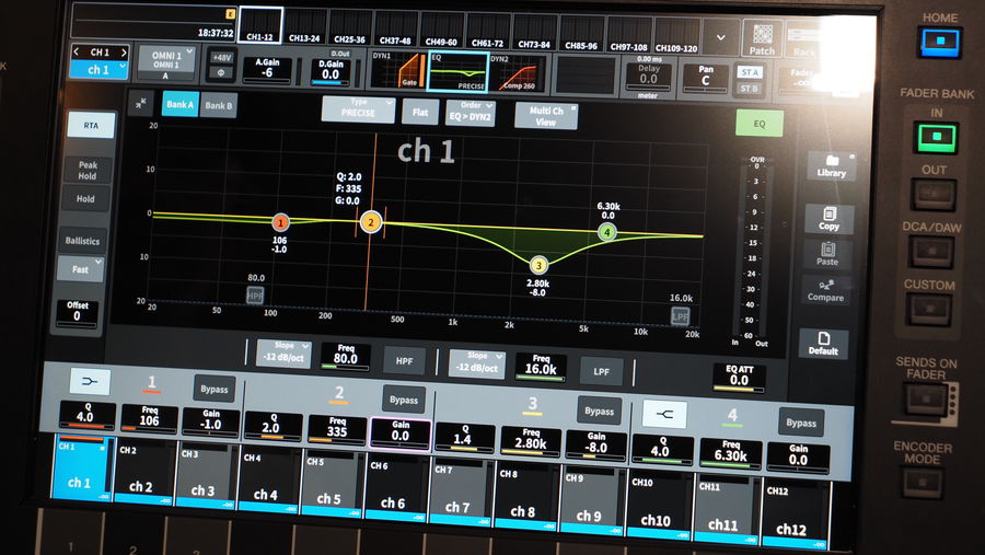 操作系が大型の液晶画面にグラフィック表示され、しかも画面タッチで操作できる点がとても分かりやすいと思います。例えばアナログミキサーを使って教えていた時代はイコライザーのQがどういうものかを教えるのが難しかったんですけど、「DM7」なら視覚的にすぐ理解できます。