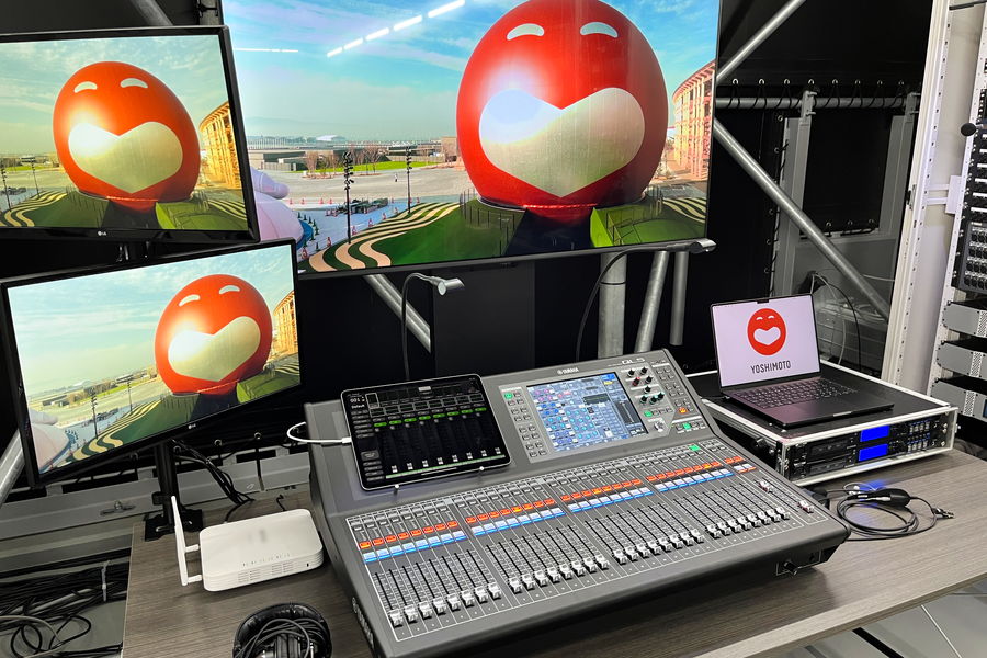 騒音ガイドラインより、敷地内において騒音レベルを85dB未満に抑え込む必要がありました。ちなみに、会場内にはBSよしもとのサブもあり、生中継に対応できるシステムになっているのですが、そこではヤマハさんの「DM7」を使っています。サブの「DM7」と『アシタ広場』の「QL5」は、Danteでリンクできるようになっています。