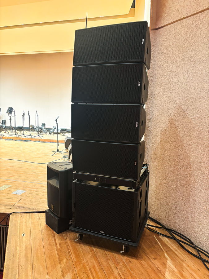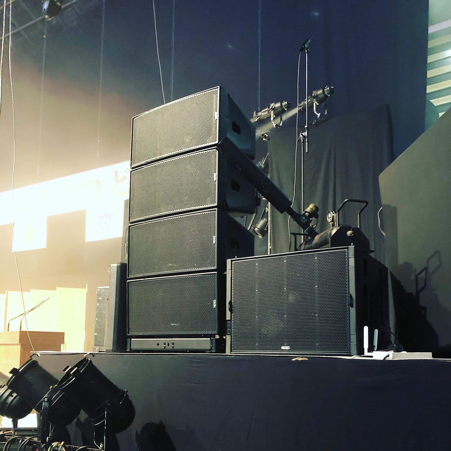 それで予算的にも合っていたので、「NXAMP4x4MK2」と一緒にすぐに注文しました。国内のPA会社で「GEO M12」を導入したのは、かなり早かった方なのではないかと思います。システム構成は、「GEO M1210」と「MSUB18」が片側4/1対向で、アンプは「NXAMP4x4MK2」が2台。本当は片側5/2対向くらいのシステムを導入したかったんですけどね。「QL5」を一緒に導入したかったので、スピーカーの本数は少し我慢しました(笑)。