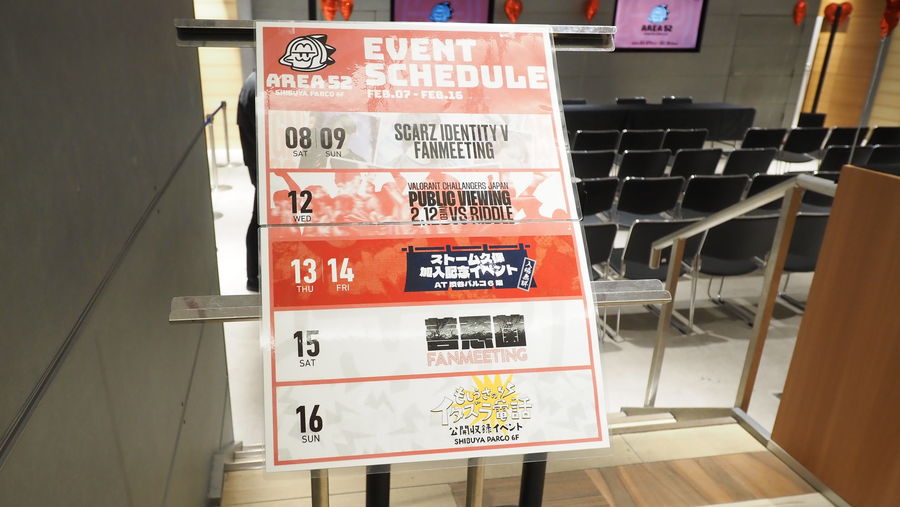 2025年2月7日から16日までの期間、渋谷PARCOで「AREA52 vol.2」というイベントを開催しました。これは2月から当社チームに所属する選手のお披露目イベント、eスポーツのウォッチパーティー、人気ストリーマーとのファン交流、グッズ販売など行うイベントでした。イベントの様子は公開収録をして、後日YouTubeで公開する予定です。(公開されたイベントの動画はこちら)