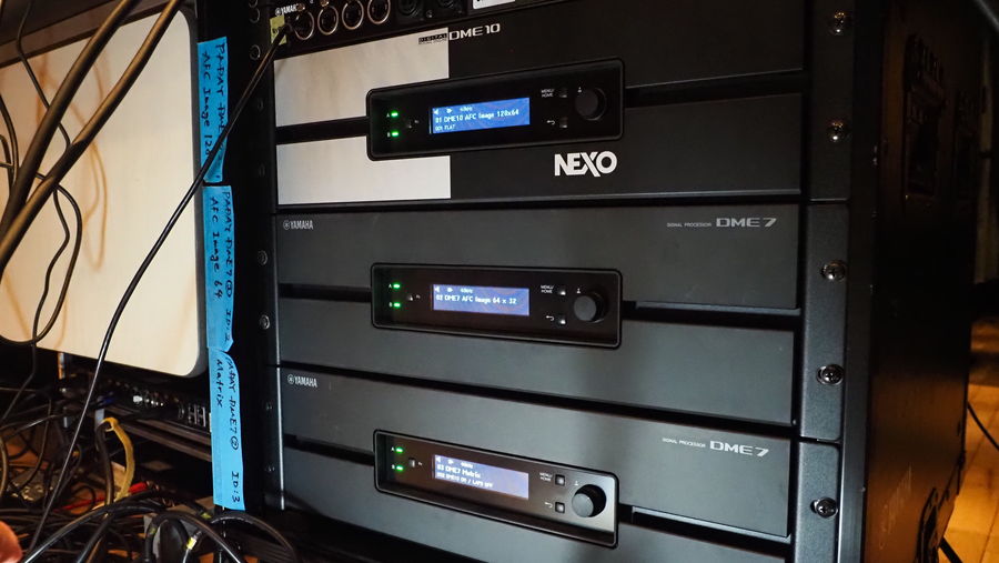 今回のイベントで主役となったのは、実空間の立体音響技術「AFC(Active Field Control)」。デモンストレーションでは新製品のイマーシブオーディオプロセッサーNEXO「DME10」、シグナルプロセッサー「DME7」、そしてDMEシリーズに新たに対応した「AFC Image」を駆使し、多数のNEXOスピーカーを使用して、最先端のイマーシブ音響空間を体験できるプレゼンテーションとなりました。