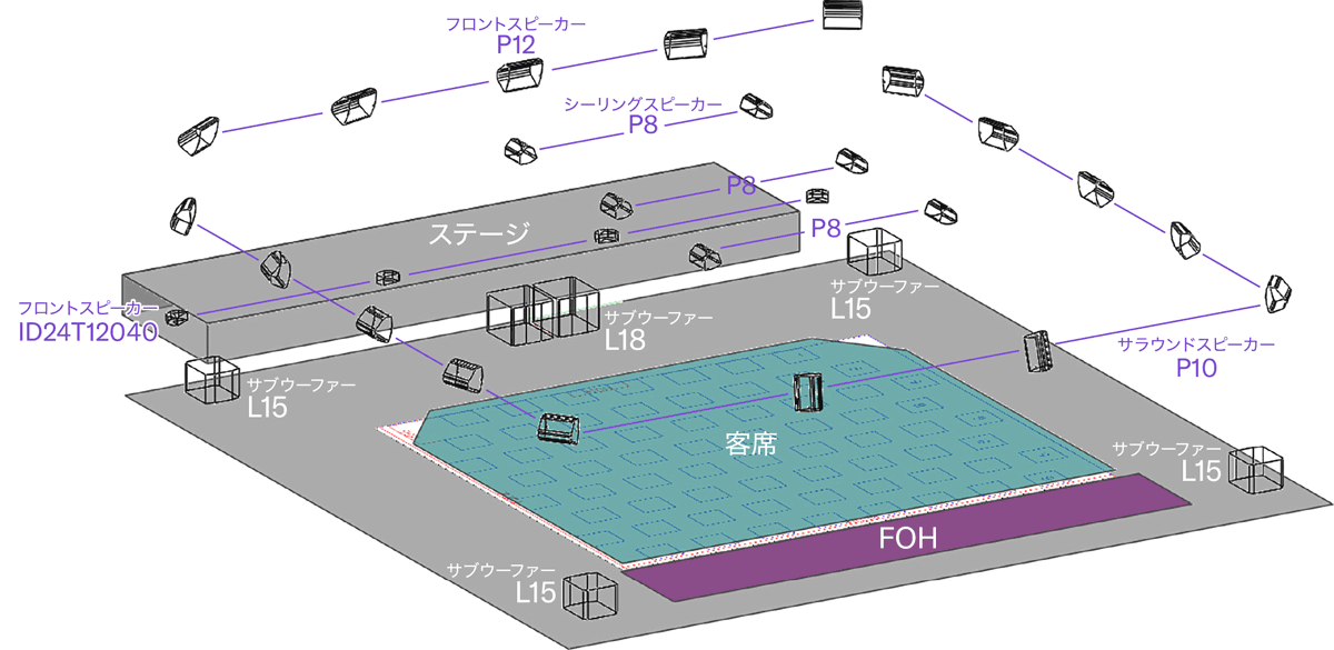 - フロントスピーカー上段:NEXO「P12」(PS type)5台