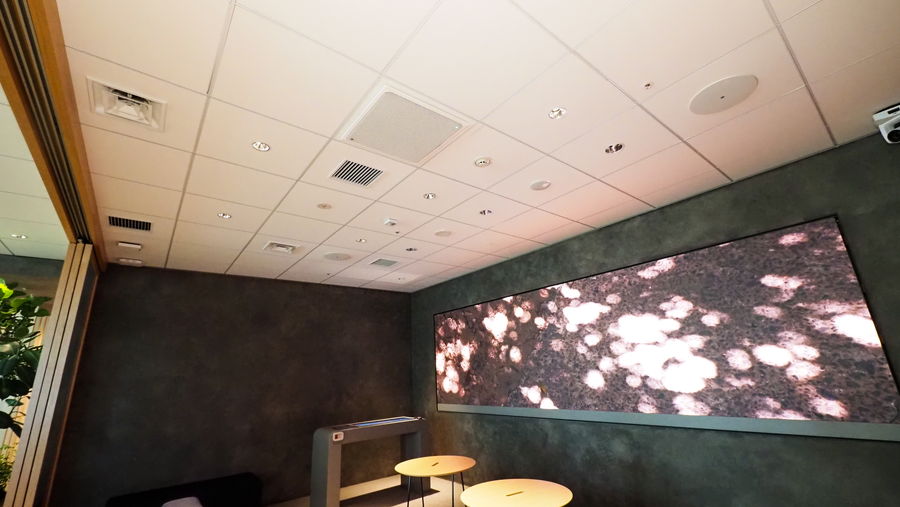 スピーチプライバシーシステムは、「ITOKI TOKYO XORK」を立ち上げた2018年から全3フロアで運用しています。館内放送用の設備スピーカーを使用して、シグナルプロセッサー「MRX7-D」から一斉にマスキング音を流していますが、音があるとないではまったく違うと全社員が感じています。