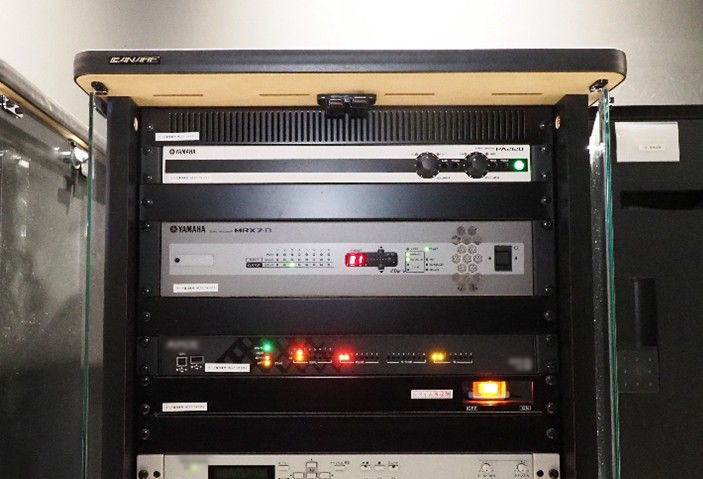 バックヤードに設置されたヤマハの音響機器