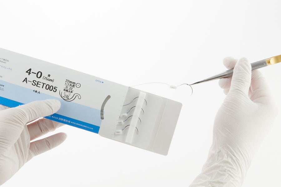 当社は、1949(昭和24)年から、計測機器の「指針」など微細な製品の加工を手がけてきました。その微細加工技術を活かし、1964(昭和39)年に医療分野へ進出。1974(昭和49)年には、国内で初めてマイクロサージャリー用の針付縫合糸を開発・発売し、2004(平成16)年には世界最小の“超微細”手術針を誕生させました。