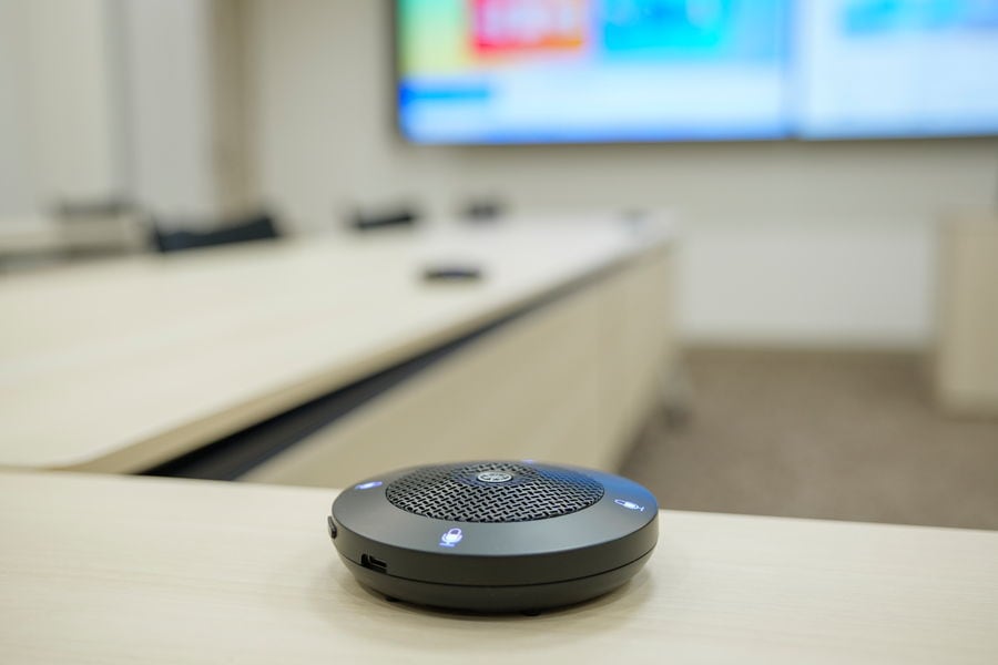 それに加えて、この会議室以外にも大きな部屋があり、将来的にそちらでも遠隔会議を行う可能性があったため、持ち運んで使える点も、ワイヤレスの卓上設置型を選んだ大きな理由です。