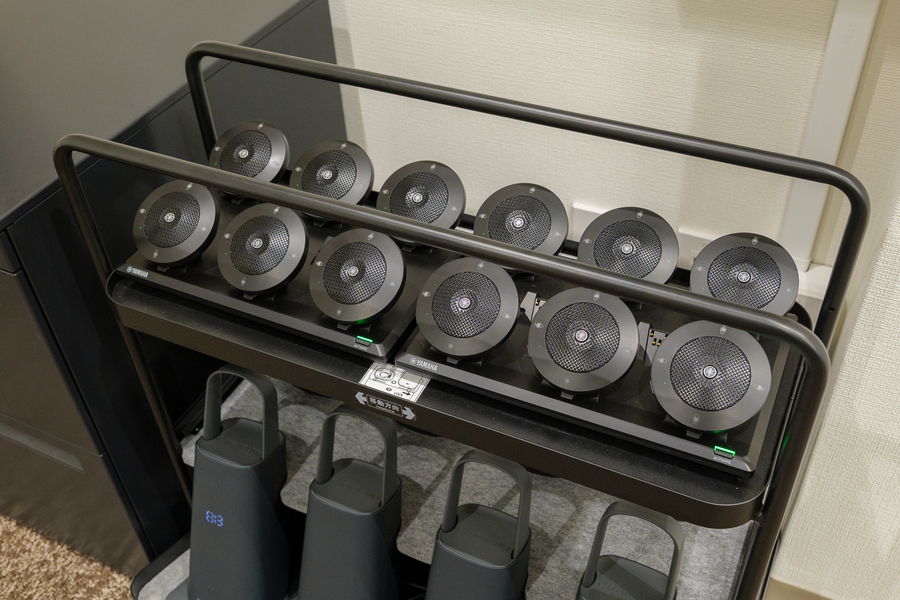 デモでは両方のタイプを試しました。天井埋め込み型は遠くの小さな声も拾える精度の高さに驚きましたし、セッティングがまったく要らないのでとても便利です。ただその分ひそひそ話など、聞かせたくない声まで拾ってしまう懸念がありました。その点、手元で個別に自由にオン/オフができる卓上設置型の方が使い勝手がいいだろうという判断になりました。