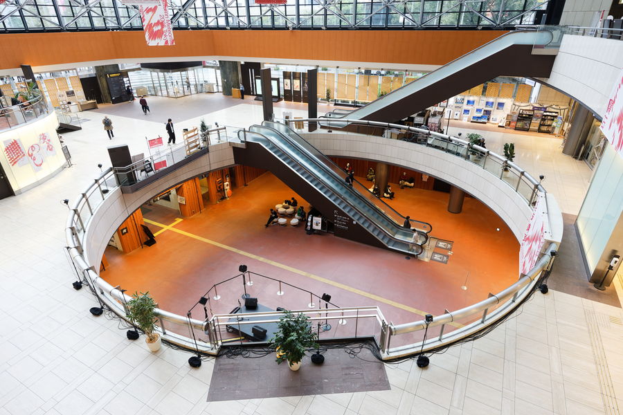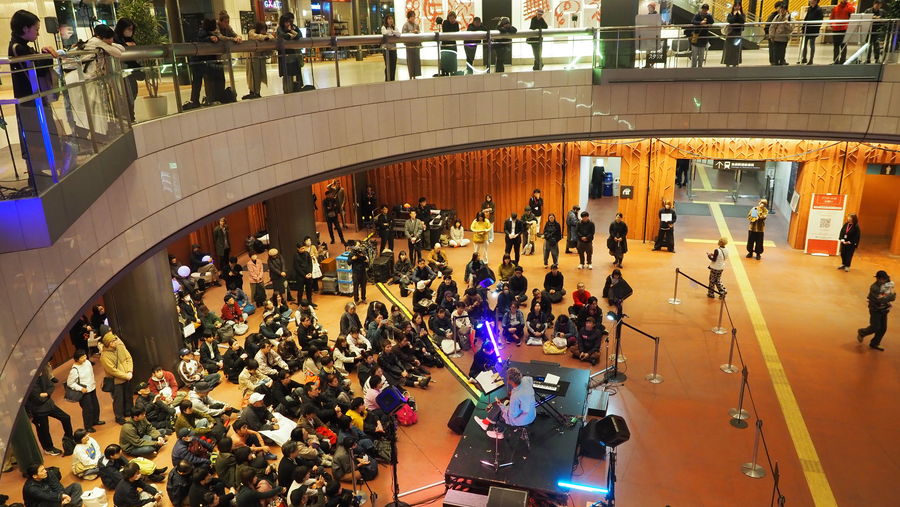 アトリウム全体が音に包まれるような、あるいは音が上から降ってくるような不思議な感覚でした。面白かったのは、パブリックスペースなので外のイベントの音や、別のホールでのオーケストラのリハーサルの音などが漏れ聞こえてくるんですよ。でも、AFCの残響空間にいると、雑多な環境音さえもが作品の一部のように混ざり、違和感なく聴こえる。この建築と一体化した「空間が鳴っている」という体験は新しい感覚でした。