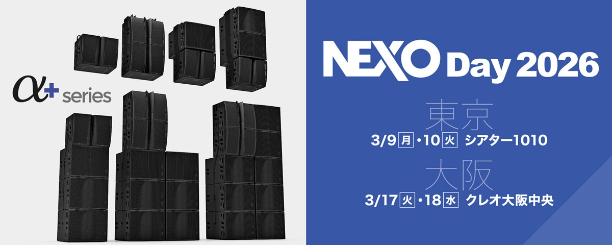 NEXOの新製品「Alpha+ Series」をご体験いただけるイベント『NEXO Day 2026』を東京、大阪にて開催いたします。