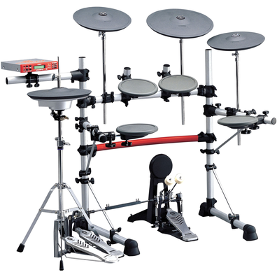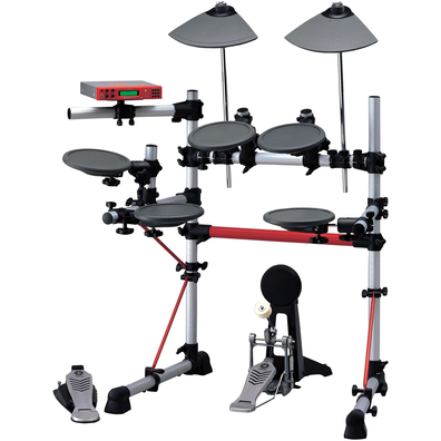 丸型シンバルパッド、パッドコントローラー付スネアパッド、リアルハイハットパッド、ハイハットスタンド、RS85ラックシステムなどをセットしました。※フットペダルはセットに含まれておりません。※生産完了・販売店在庫限り
