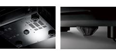 H型クロスフレーム&ダブルボトム構造で理想の機械的強度を発揮する制振・高剛性シャーシ、設置安定性を高めて筐体の共振を効果的に分散する独自のアンチレゾナンステクノロジー(Anti Resonance Technology)による<5番目の脚>など、ZシリーズやAVENTAGEシリーズで実績を積んだ筐体設計技術を投入。ヤマハAVアンプの伝統というべき圧倒的な音の静寂性を支えています。さらにボディ両サイドにはデザイン性を高め、筐体全体の制振にも貢献するアルミ押し出し材サイドパネルを装着しました。