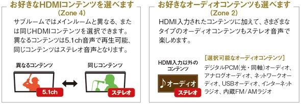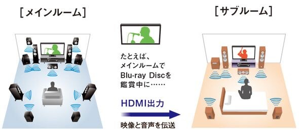 別室で映画の続きを観たり、お好みのオーディオソースが聴けるHDMI対応アドバンスドゾーンスイッチング