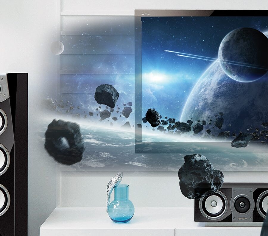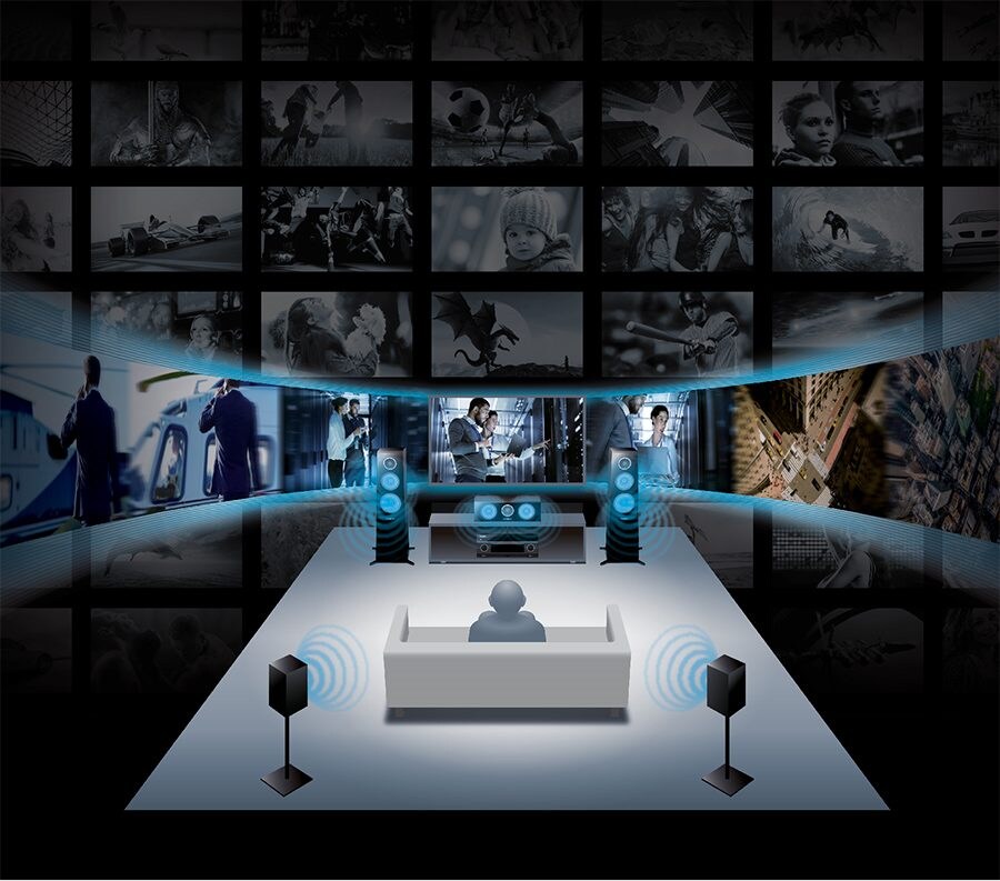 Dolby AtmosⓇとDTS:X™、ふたつの3次元サラウンドフォーマットに対応したサラウンドデコーダーを搭載しました。個々の音を、頭上を含めた室内のどの位置にも定位または移動させ、3次元的な音響空間を自在に創り上げることのできるこの技術への対応により、リアルな包囲感や移動感を家庭のシアタールームで楽しめます。