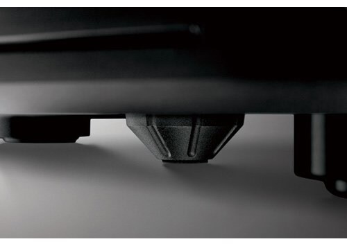 底面に装着した円錐形レッグは、周囲の音圧によるシャーシの共振を分散するとともに、電源トランスが発する微振動も抑え込む〈5番目の脚〉。AVENTAGEの力強くフォーカスの合ったサウンドを実現する重要なパーツです。さらに、表示部などの輻射を遮断する彫りの深い専用アルミフロントパネルも併せて採用しています。