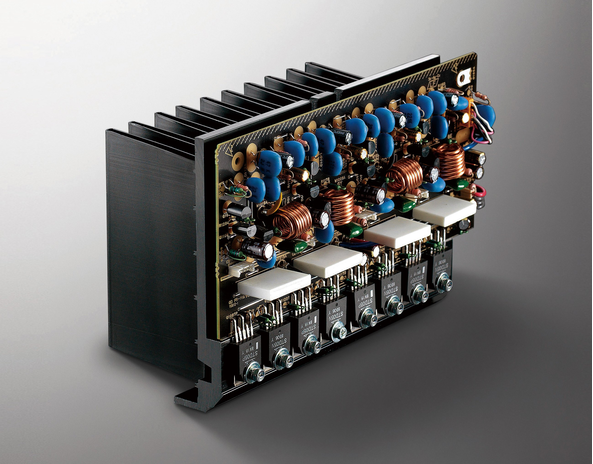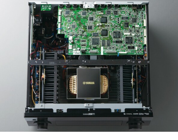 ヤマハが培ってきた機構設計のノウハウを集約し、理想の機械的強度と重量バランスを発揮する左右対称コンストラクションの制振・高剛性シャーシを採用。設置安定性を高めて筐体の共振を分散し、電源トランスの微細な振動をも抑制するアンチレゾナンステクノロジー(Anti Resonance Technology)を応用した<5番目の脚>とも相まって、力強くフォーカスの合ったサウンドを実現します。また電源部には、オーディオ回路用、デジタル回路用、FLディスプレイ回路用をそれぞれ独立させて全動作モードでのS/Nを高めた3回路分離型パワーサプライを搭載。給電経路を最短化するとともに、音質に影響を与える磁場効果も給電レイアウトの工夫によりキャンセルすることで、音の瞬発力とリアリティをいっそう高めています。