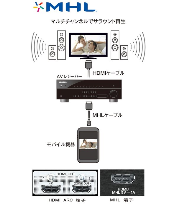 *¹ MHL(Mobile High-definition Link)とは米Silicon Image社が開発した、携帯端末から高速での映像及び音声伝送が可能になるインターフェイス規格です。