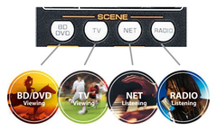 よく使う映像ソースや音場プログラムの組み合わせを簡単に呼び出したりテレビ/レコーダーを連動して起動*する4つの「SCENE(シーン)」ボタン(前面パネルおよびリモコン)を装備。多彩な機能をどなたにも快適に使いこなせます。実使用時の消費電力を約20%低減(当社実験値)して「ながら視聴」やBGMユースに効果を発揮する「ECO(エコ)モード」、さらにスタンバイスルー状態での待機時消費電力も最小限に抑え、気になる消費電力をトータルで低減しています。