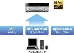 DSD 5.6MHz、AIFF/WAV/FLAC 192kHz/24bit、 Apple Lossless 96kHz/24bit再生をサポート