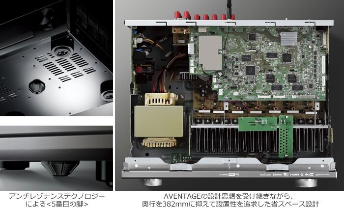 本機は、アンチレゾナンステクノロジー(Anti Resonance Technology)による〈5番目の脚〉を装着した制振性を高めた筐体や、前面カバーを備えた専用フロントパネルなどを採用して、ハイグレードAVレシーバー「AVENTAGE」の一員にふさわしい仕様・音質へとアップグレードしたチューンドモデルです。タイトで解像度の高い低域に象徴される、確かな音の違いを追求しました。
