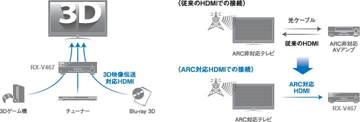 3D映像をテレビ側へパススルー。オーディオリターンチャンネル(ARC)にも対応