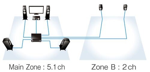 メイン音声をリビングルームとキッチンなどで同時に聴けるZone B対応