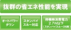 スタンバイスルー時消費電力2.7W以下+オートパワーダウンによる省電力設計