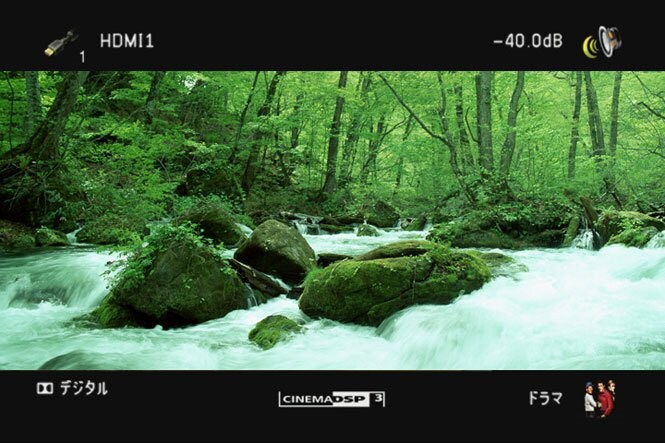 再生中の映像へのオーバーレイ表示やアルバムアート表示、シンプルで視認性に優れた日本語対応オンスクリーンディスプレイがさらに進化。AVアンプの動作状態(選択中の入力ソース、シネマDSPモード、フォーマット&デコードモード、音量)が画面の上下端に表示されるステータスバーを新採用したほか、ネットワークコンテンツのブラウズも実現しました。また、ショートメッセージのON/OFF機能も追加。ボリューム操作時などに表示されるショートメッセージをOFFにできるため、映画などの字幕を隠すことなく快適に視聴できます。
