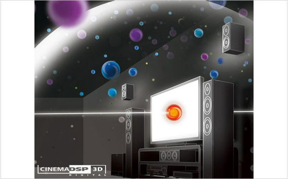 音場に「高さ」方向のデータを加え、プレゼンススピーカーを使って立体的なサラウンド空間を再現するシネマDSP〈3Dモード〉を搭載。映画向けプログラムでは画面に引き込まれるような立体感を、また音楽向けプログラムでは天井や床の反射音までも感じさせる生々しい臨場感が満喫できます。さらに、フロントスピーカーの上部にフロントプレゼンススピーカーを配置することで実現していたシネマDSP〈3Dモード〉を、通常の7.1chまたは5.1chスピーカー構成でお楽しみいただけるVPS(バーチャル・プレゼンス・スピーカー)機能も装備。スピーカーの設置において導入の敷居が高かった3Dモードを、より手軽に体感できます。また、シネマDSP音場プログラムは、圧縮音声を高音質再生するミュージックエンハンサーと組み合わせて使用できるため、デジタルテレビ放送やインターネットラジオ放送、iPodやパソコンにストックした圧縮音楽ファイルなども臨場感豊かに楽しめます。