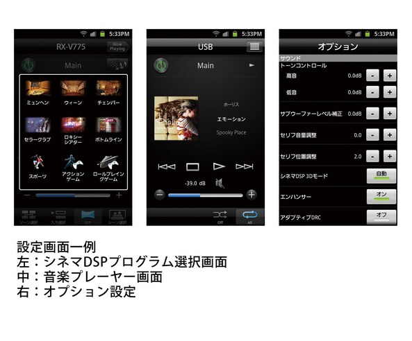 直感的に操作できる洗練された使いやすさ、サクサク動くレスポンスの良さで高い評価をいただくヤマハAVアンプ専用アプリケーション「AV CONTROLLER」(無料)に対応。お手持ちのスマートフォンやタブレット端末*に「AV CONTROLLER」をインストールすれば、美しくビジュアライズされた操作画面を見ながら本機の操作や設定を快適に行うことができます。さらに、「AV CONTROLLER」にはヤマハオリジナルの音楽プレーヤー機能も装備しており、iOSまたはAndroid端末内の音楽コンテンツをワイヤレスでストリーミング再生可能。この音楽プレーヤー機能は音楽再生に特化した音質重視のシンプルな専用アルゴリズムを採用しています。