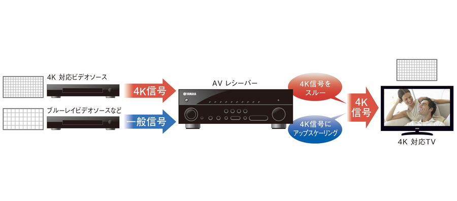 4K Ultra HD映像信号の伝送(パススルー)に加えて、従来のHDまたはSD(標準)画質の映像信号をUltra HD相当の解像度まで引き上げてテレビへ伝送する「4Kアップスケーリング」にも対応。洗練されたデザインのGUI画面を採用した日本語対応OSD(オンスクリーンディスプレイ)も装備し、AVレシーバーの各種設定のほか、ネットワークオーディオやインターネットラジオなどのコンテンツブラウズもテレビ画面上で快適に行えます。