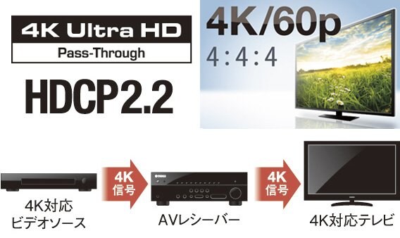 *¹ HDR(ハイダイナミックレンジ)映像伝送とは、従来より幅広い明暗のダイナミックレンジを持つ映像信号の伝送を可能にする技術のことで、4Kテレビや次世代光ディスク、映像配信サービスなどでの導入が期待されています(ファームウェア更新により対応予定)。