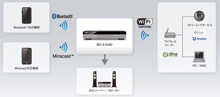 *¹ Miracastを使用しているときは、ネットワーク機能(DLNA)などは使用できません。また、ディスクトレイの操作や他の再生もできません。