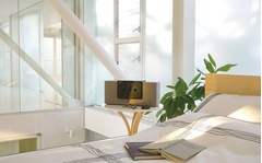 フロントパネルに大きく時刻を表示。シンプルな置き時計として、インテリア感覚で部屋の中にセットできます。また、アラーム機能も充実。 iPod/iPhoneやCD、USB、そしてFM/AMラジオをアラーム音として選択でき、お気に入りの音楽で目覚められるうえ、これらの音源ソースとビープ音の組み合わせ設定も可能。「インテリアラーム」機能により、設定時刻の3分前から、音源ソースの音量がゆっくり大きくなり、設定時刻にビープ音が鳴ります。加えて、最初はストレスを感じやすい高い周波数帯域をカットし、そののち徐々に再生。毎朝の快適な目覚めをサポートします。