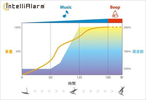フロントパネルに大きくしっかり時刻表示。ラジオもFM/AMに対応。毎日の生活のそばでクロックラジオとして活躍します。表示の明るさは3段階に調節でき、部屋の明るさに応じて自動調節できる照度センサーも搭載。就寝時にうれしいスリープ機能や、キッチンでも便利なタイマー機能も搭載しました。アラーム機能ではiPod*、ラジオをアラーム音として選択でき、これらの音源ソースとビープ音を組み合わせたモードも選択できます*。この場合、設定時刻の3分前から、音源ソースがゆっくり大きくなり、設定時刻にビープ音が鳴ります。また、ストレスを感じやすい高い周波数帯域も最初はカットし、徐々に再生するなど、快適な目覚めをサポートします。