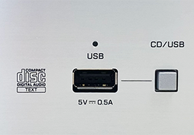 USBメモリーなどを接続してデジタル音楽ファイルを再生できるUSB端子を搭載しました。WAV/FLACの96kHz/24bit高音質フォーマットの再生にも対応しています。