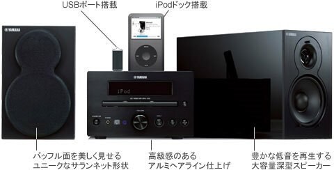 お手持ちの携帯音楽プレーヤーなどを手軽に聴けるiPodドックとUSBポートを搭載