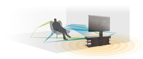 音のビームを壁に反射させることで、リアスピーカーを設置することなく、本格的な5.1chサラウンドを実現します。また最適なサラウンド効果が得られる自動セットアップ機能「インテリビーム」により、約24畳までの部屋に対応します。