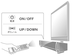 テレビリモコンの信号を本機に記憶させることが可能。テレビのリモコンひとつだけで、テレビと本機両方の電源ON/OFFや音量調節を行うことができます。それぞれのリモコンを持ち替えて操作する手間を省きます。