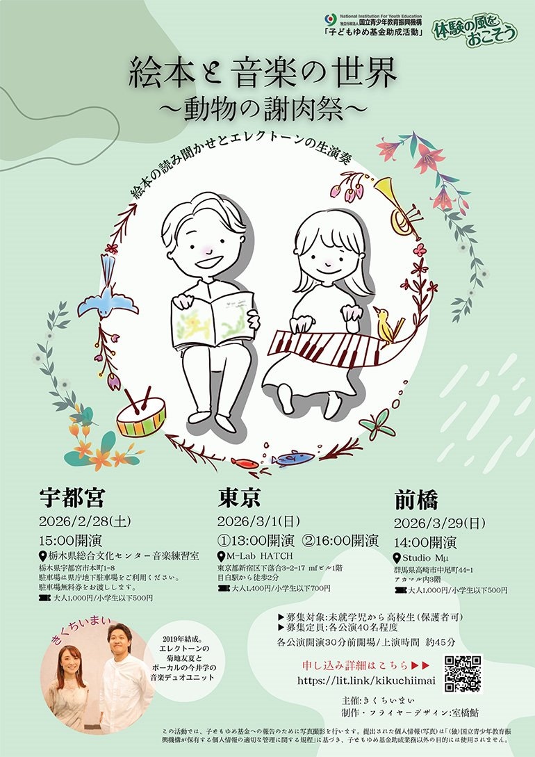 【料金】大人 ¥1,000 小学生以下 ¥500 ※募集対象:未就学児から高校生(保護者可)