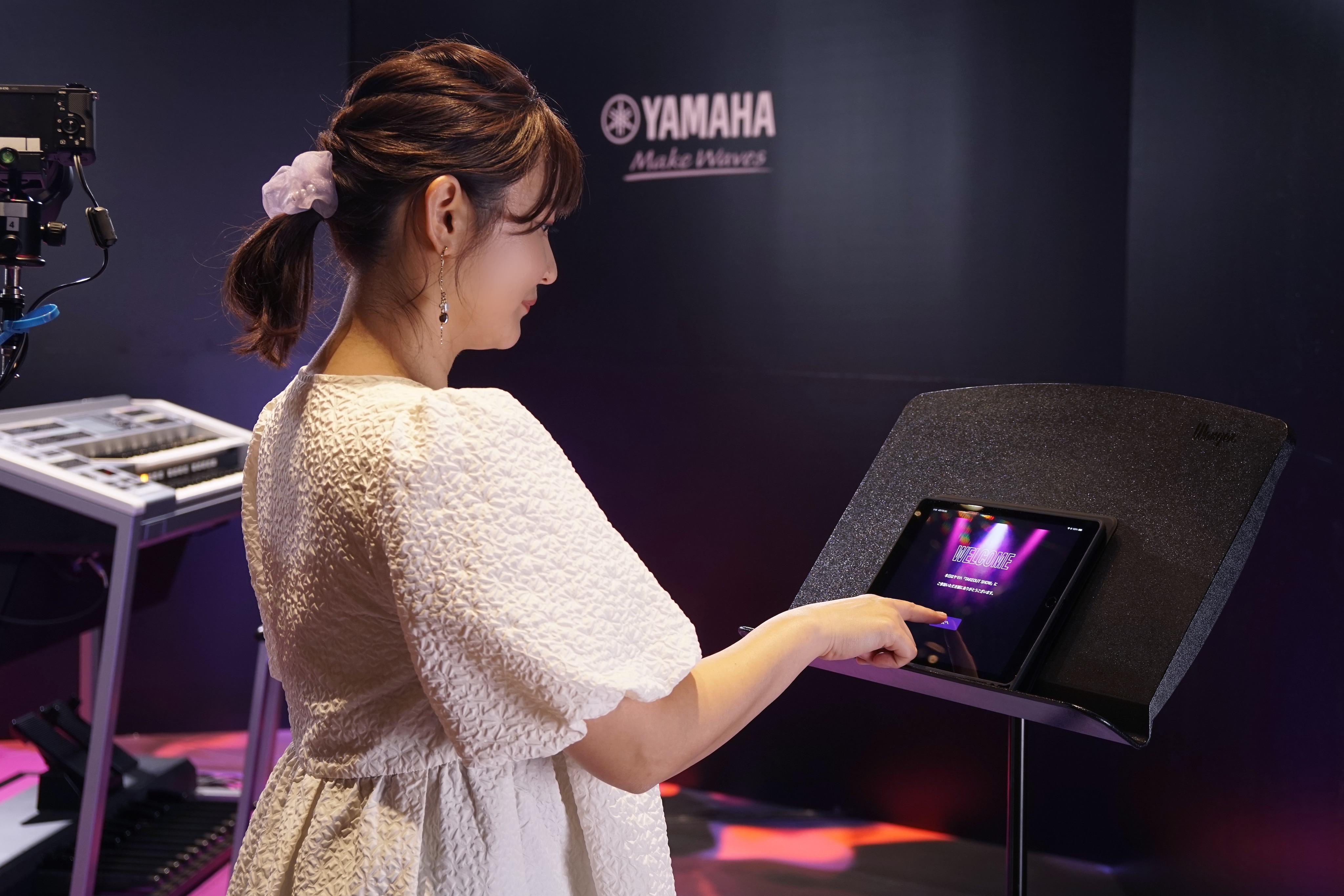 TAKEOUT SHOW エレクトーン用に特別に設営されたセットスタジオでの撮影。黒い背景でカッコいい動画が撮影できます。