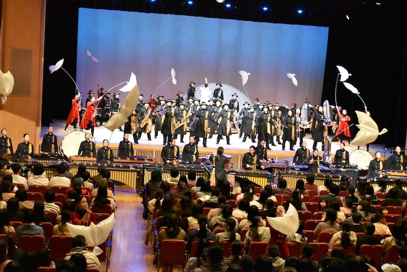 パーカッションのみだと音が単調になりがちな部分もあるので、管楽器が入ることでサウンドがより華やかになりました。