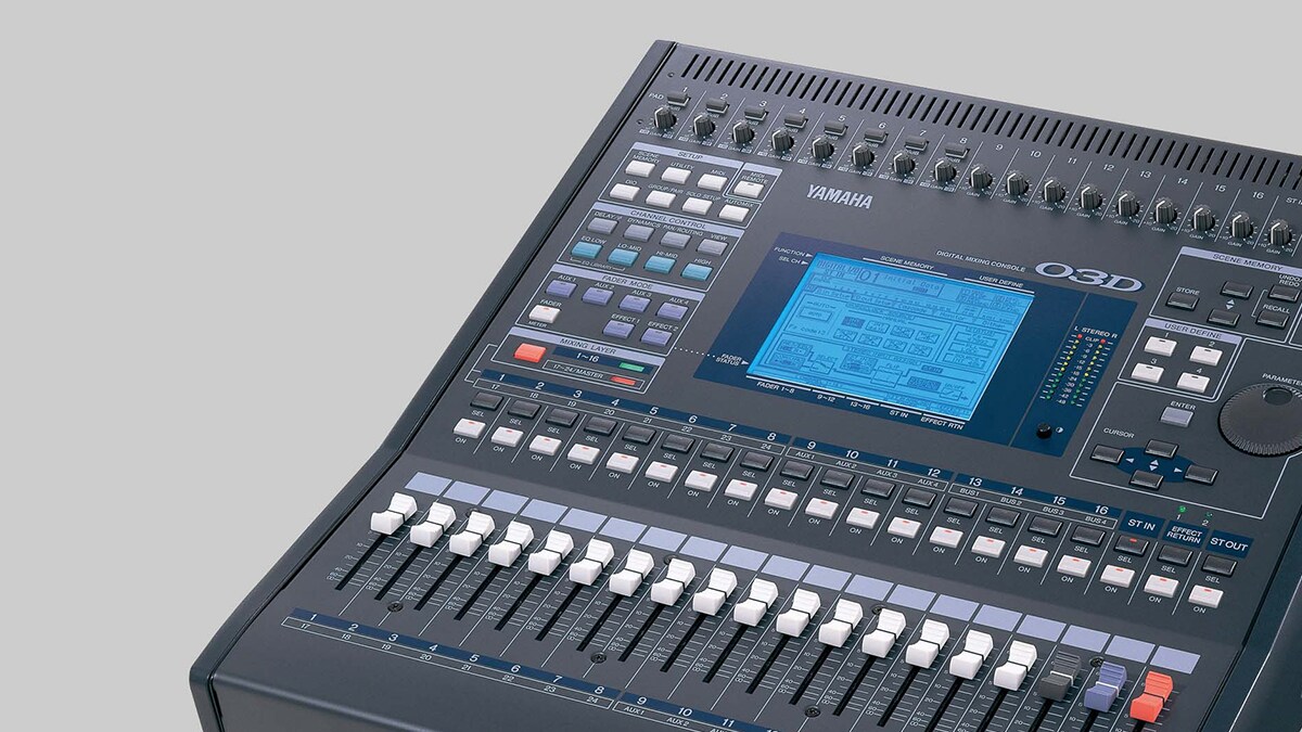 ProMixの後継機となる01V。リアパネルには02Rと03Dで採用しているスロットをよりコンパクト化した新規格「Mini-YGDAI」スロットを装備。デジタルレコーダーと組み合わせたレコーディングシステムはもちろんのこと、01Vとパワードスピーカーを組み合わせた小規模SRシステムも構築可能な、“Versatile”なコンソールでした。