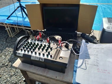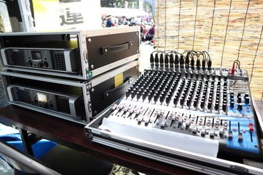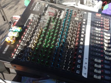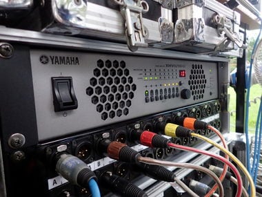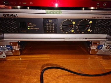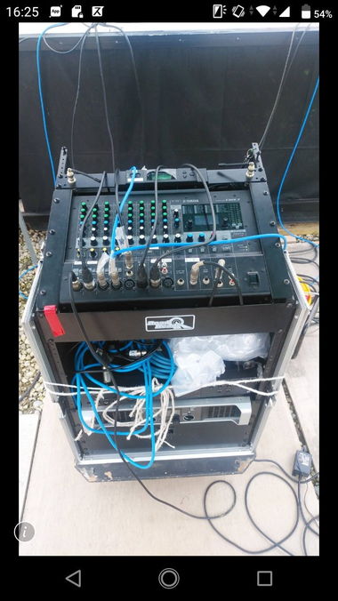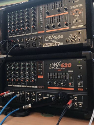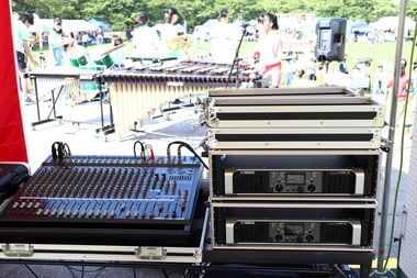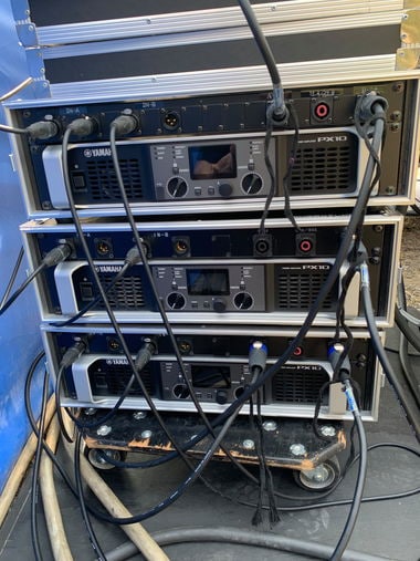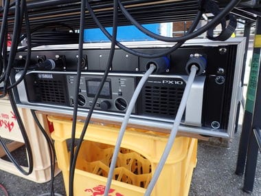 地域の夏祭りのだだっ広い屋外会場のため、古い機材も引っ張り出してゴリ押しで音量上げました。 パワードミキサーEMX5000-20にS115Vを繋げ、PX5にCBR15繋いでなんとかかんとか。 でもさすがヤマハ、15年前のミキサーでもガリ一つ出ずに現役バリバリでした。 #PAクールビズ