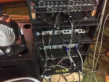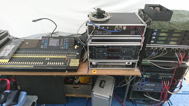 見えにくいけどモニターアンプは2002。冷静に考えるとすごいことだなぁ。この現場で一番の先輩は2002。 LS9もまだまだ現役です。 #PAクールビズ