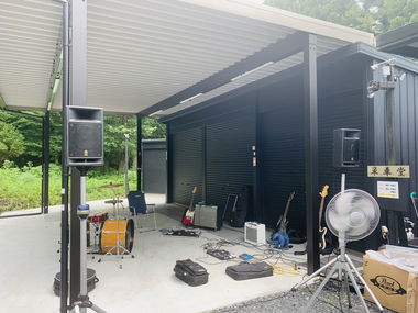 バイク屋さんガレージにてBBQとセッションライブ♪ お肉と音楽とアルコール! 真夏の野外!笑 #単車堂 #PAクールビズ #YAMAHA