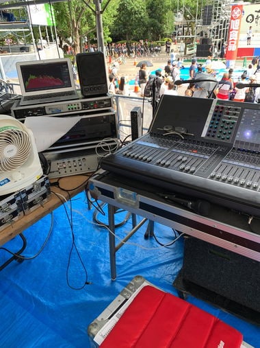 出先音声の伝送に今年はDanteを採用!普段はPAで使ってるQL1を仮設中継車へ搭載!夏祭りの熱い鼓動を余すとこなくDanteに乗せてQL1でMix!暑い熱い夏祭りの映像に熱い鼓動を添えてくれました!
