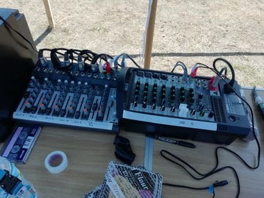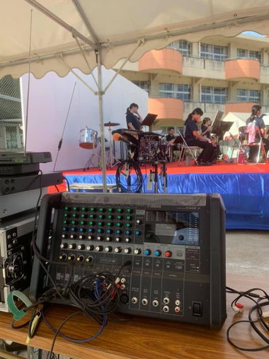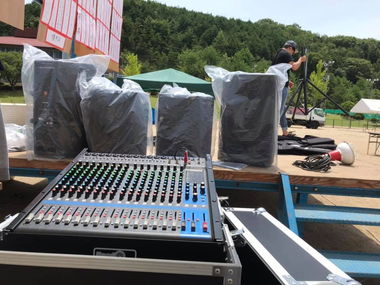 MG20XUは地元の夏祭りで活躍してくれました! バンド物からカラオケまで幅広いジャンルのPAで使用しました! Mid可変式のEQやワンノブコンプが音作りに貢献してくれました! 半ズボンで仕込みをしてしまったため、膝の裏が明太子のようになりました!